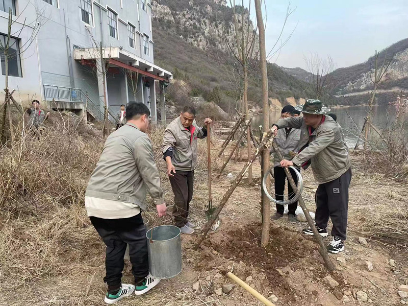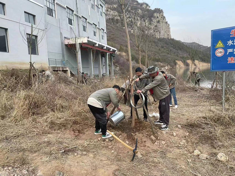 大家分工協(xié)作,相互配合,搬運樹苗,兩三人一組,挖穴、種樹、培土、壓實、澆水,栽下一顆又顆新綠。這次植樹工作進一步提高了公司全體員工植綠、護綠、愛綠、興綠的保護生態(tài)環(huán)境的責任意識。公司秉承“綠水青山就是金山銀山”的理念,本著建設“美麗大家園 幸福新泵站”的工作目標,踔厲奮發(fā)、勇毅前行,為水務公司更美好的明天貢獻力量和擔當。